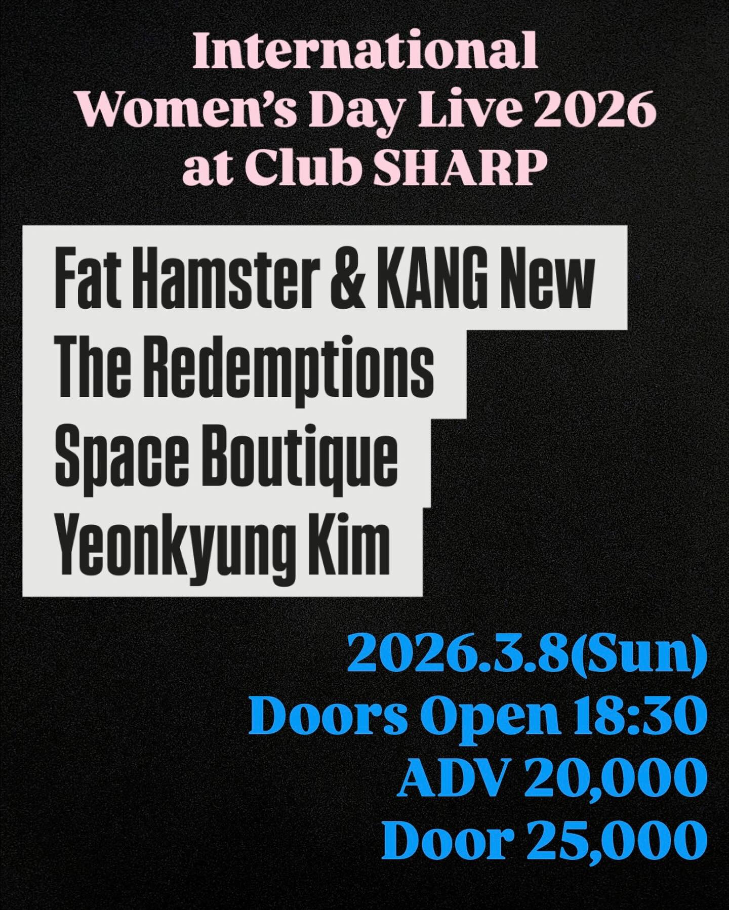 3월 8일 여성의 날을 기념하여 여성의 권리를 지지하는 뮤지션들과 관객들이 함께하는 공연입니다.