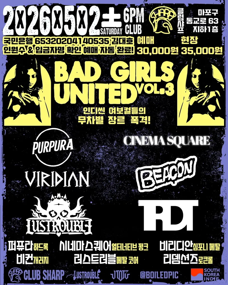 또한 클럽보다는 밴드를 서포트하는 공연입니다.