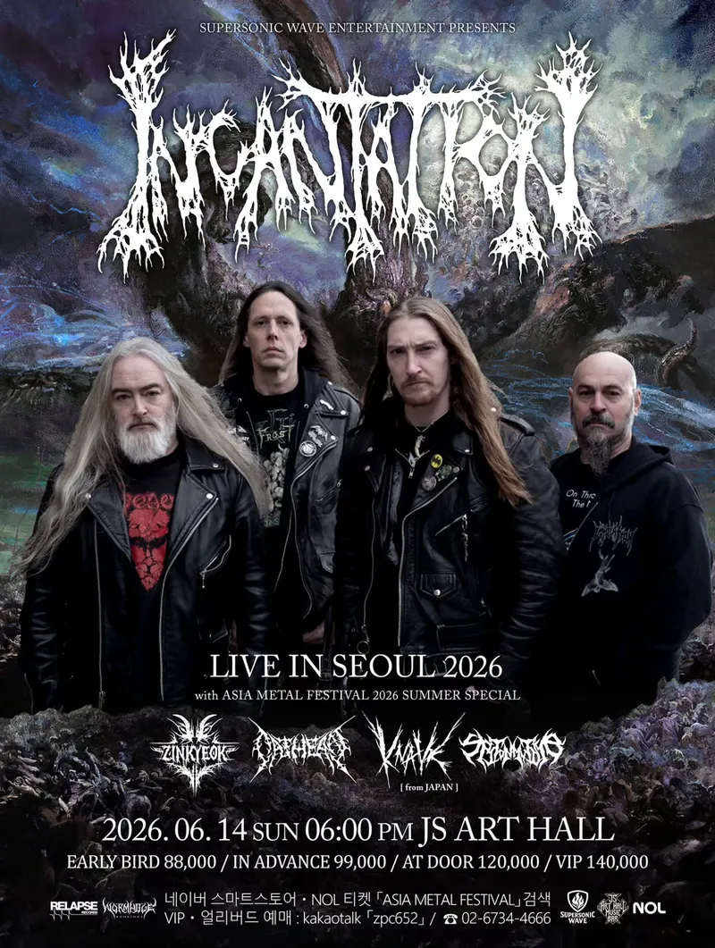 뉴욕 데스메탈 레전드 "INCANTATION" AMF 2026 썸머스페셜 헤드라이너 확정 !!