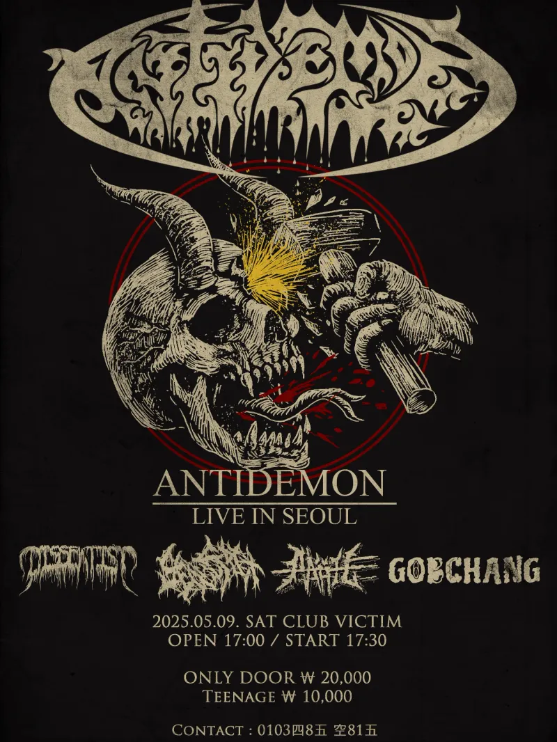 크리스찬 데스메탈/그라인드코어의 대표밴드🔥 육중한 그루브와 거침없는 질주로 30년 넘게 사탄 마귀 때려잡아온 ANTIDEMON이 한국에 상륙합니다 🔨🔨🔨