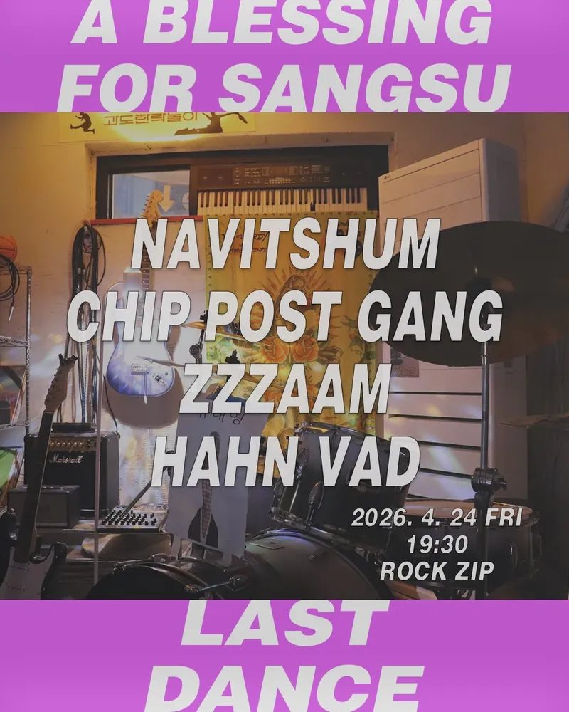*잠 ZZZAAM @zzzaam_official - 한국 슈게이즈, 포스트 록 1세대 잠의 서정적인 노이즈와 이야기는 그 동안 많은 이들이 록집에 남겨두었던 추억을 조금씩 연상시킨다. 아쉬움을 뒤로 한 채, 여운이 남는 연주와 함께 점차 울려퍼지며 록집의 밤을 더욱 화려하게 만든다.