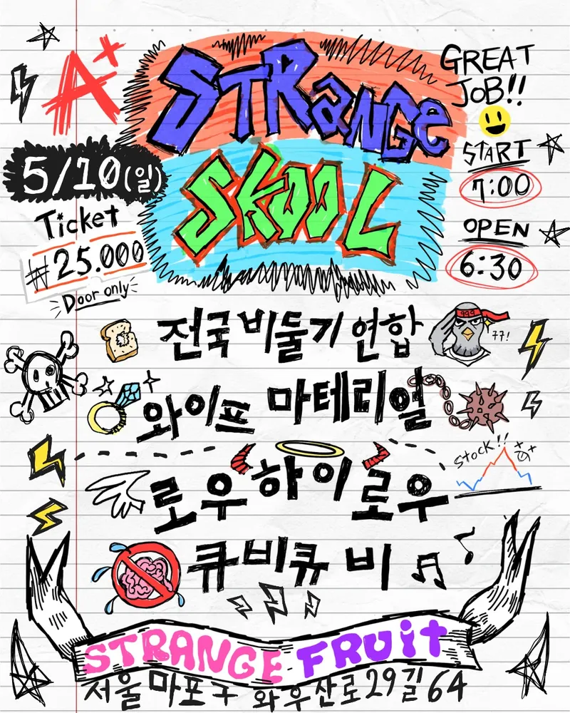안녕하세요 qbqb 드러머김희권입니다. 저희밴드qbqb(김희권,이다영) 가 2인조밴드를 결성해서 공연이 너무 하고싶어서 스트레인지 프룻 사장님께 부탁을 했습니다. 그런데 일이 커졌네요.. 너무 감사하게도 공연을 하게끔 도와주시는 사장님과 같이 공연해주는 밴드 분들께 먼저 감사인사드립니다! 간단하게 하고싶었지만 좋은 밴드들이 같이 공연에 참여 해주기로 하셔서 놀아볼까합니다.